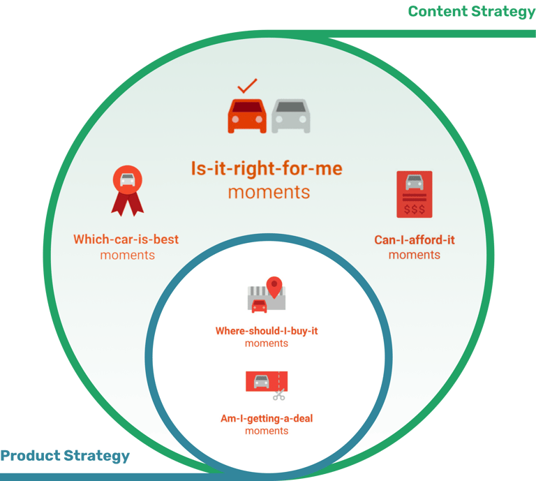 My research was anchored in Google’s Micro-Moments Framework, which identifies critical moments when consumers turn to their devices to answer immediate questions during their decision-making process. These moments are intent-driven and occur throughout the buyer's journey. By applying this framework to the car-buying process, we were able to focus on key moments when users need specific information to make confident decisions.