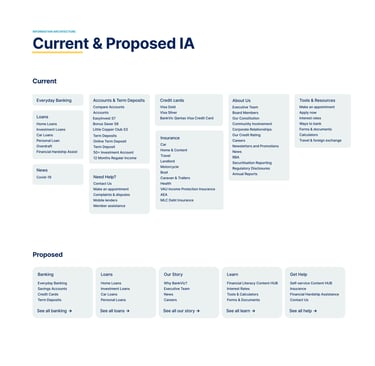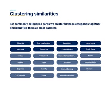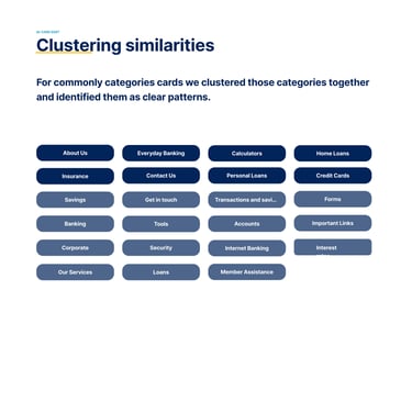 Users consistently grouped financial products by their end goals (e.g., saving, borrowing) rather than by BankVic’s internal categories. This finding informed our decision to shift the focus of the information architecture from product-focused to goal-oriented navigation.