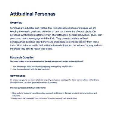 Conducted in-depth interviews with internal BankVic stakeholders to map internal ecosystems, service delivery, and website governance.